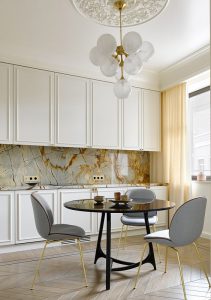 Modernaus ir klasikinio stiliaus derinimas kuria lengvumo ir tuo pačiu – jaukumo įspūdį. „Klientai vis dažniau renkasi neperkrauta modernios klasikos interjero stiliu. Šiam stiliui būdingas derinys klasikos ir šiuolaikiškumo bei madingų tendencijų derinys. Tokiame interjere vietą atranda komfortiški ir modernūs baldai, o sienos, lubos, grindys – dekoruojamos klasikinėmis detalėmis“, – dalijasi dizainerė Jekaterina Kazmazovskaja.